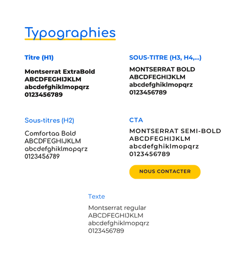 Les typographies (Montserrat et Comfortaa) renforcent une esthétique structurée, contemporaine et arrondie, en cohérence avec l’image d’une avocate accessible mais pointue.