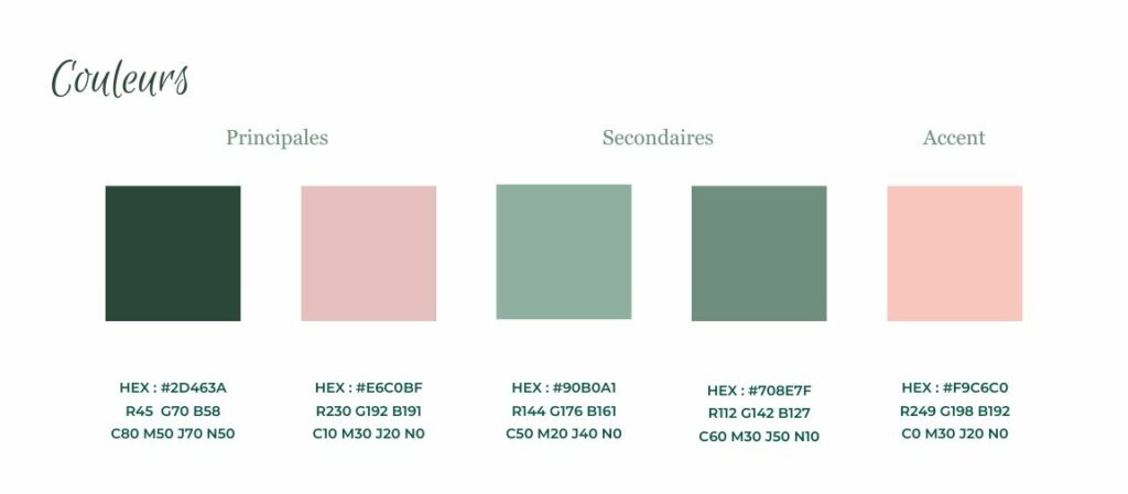 La charte graphique repose sur une harmonie visuelle subtile, qui marie sérieux et délicatesse :