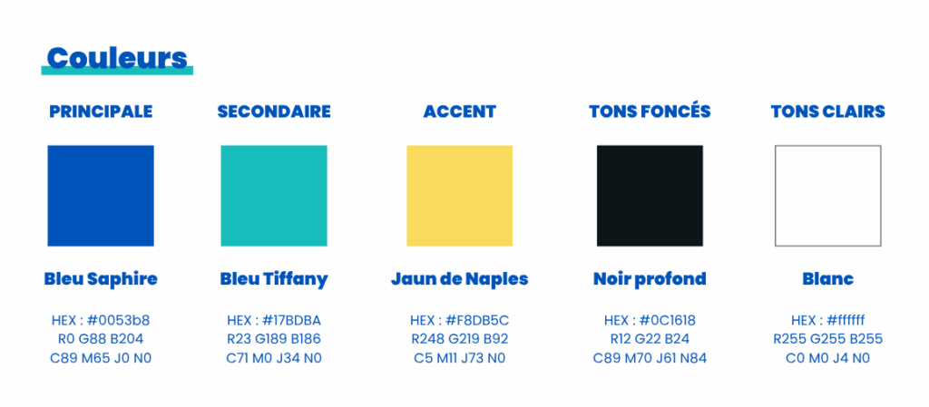 La charte graphique repose sur une palette audacieuse et lumineuse, qui traduit visuellement l’énergie positive et la singularité de Marion :